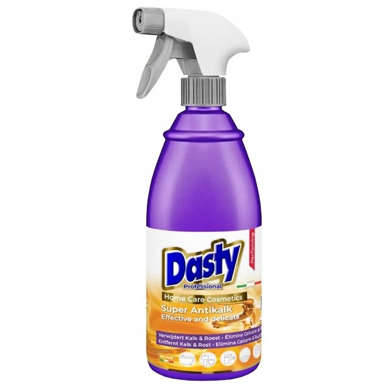 Dasty Super Antikalk to skuteczny odkamieniacz w wygodnej formie sprayu, przeznaczony do usuwania kamienia, osadów z twardej wody oraz zabrudzeń z powierzchni łazienkowych i kuchennych. Dzięki skoncentrowanej formule szybko przywraca czystość i połysk czyszczonym elementom.
