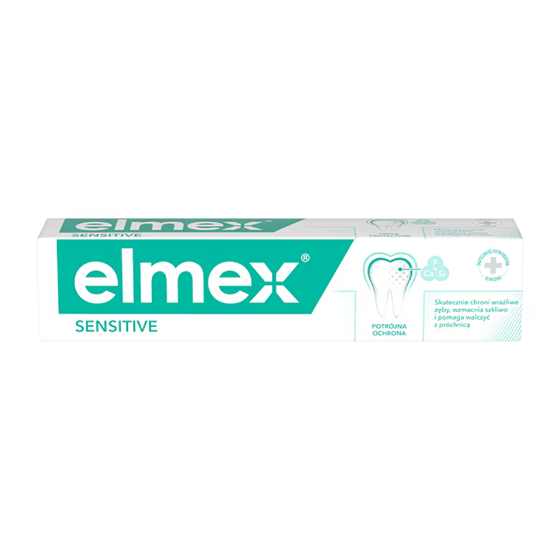 Elmex Sensitive to specjalistyczna pasta do zębów opracowana z myślą o osobach z nadwrażliwością zębów. Dzięki zawartości aminofluorku skutecznie wzmacnia szkliwo i chroni odsłonięte szyjki zębowe, pomagając zmniejszyć ból związany z nadwrażliwością.