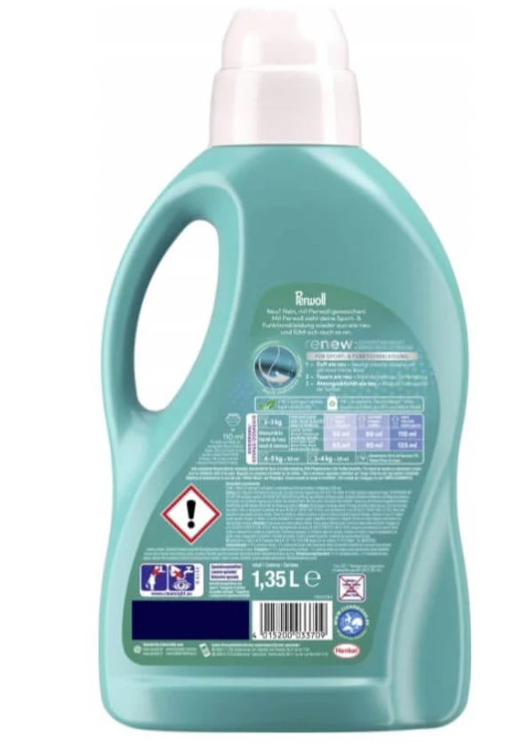 Perwoll Renew Sport Żel do prania 1,35 L (27 prań) to specjalistyczny detergent stworzony z myślą o odzieży sportowej i funkcjonalnej. Dzięki formule Renew skutecznie czyści tkaniny, jednocześnie pomagając zachować ich elastyczność, kształt oraz właściwości techniczne.
