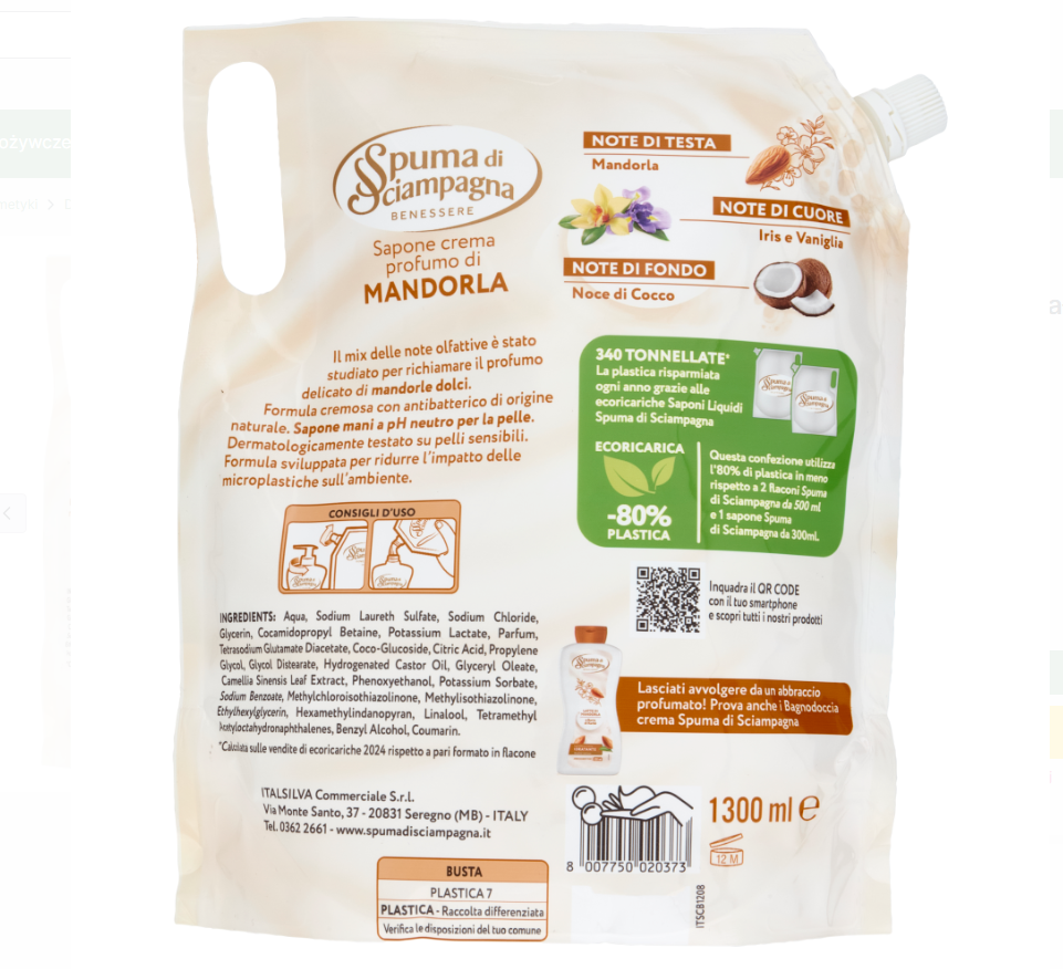 Spuma di Sciampagna Mleczko Migdałowe to praktyczne i higieniczne rozwiązanie, które łączy skuteczność mycia z delikatną pielęgnacją i przyjemnym zapachem migdałów.
