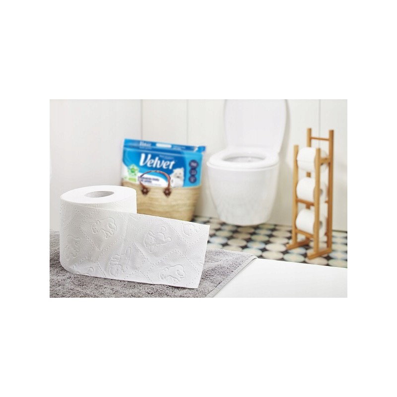 Velvet Delikatnie Biały to papier toaletowy stworzony z myślą o codziennym komforcie i higienie. Łączy w sobie miękkość, wytrzymałość oraz estetyczny, klasyczny wygląd, dzięki czemu doskonale sprawdzi się w każdej łazience.