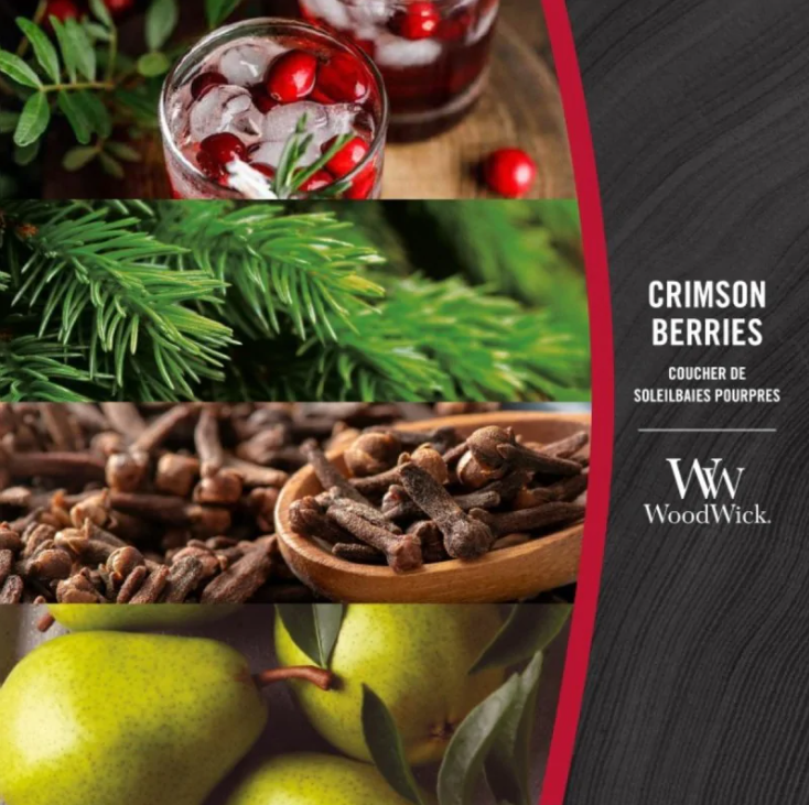 WoodWick Crimson Berries to elegancka świeca zapachowa, która łączy intensywny, owocowy aromat czerwonych jagód z ciepłem naturalnego drewnianego knota. Jej wyjątkowy zapach tworzy w domu przytulną, relaksującą atmosferę, idealną na wieczorny odpoczynek.