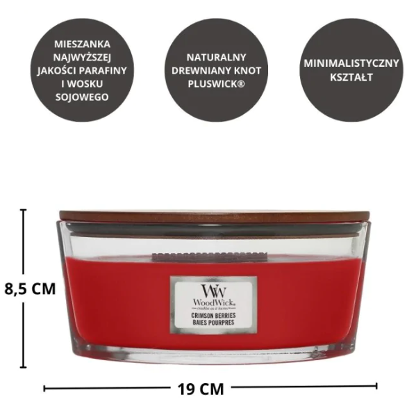 WoodWick Crimson Berries to idealny wybór dla osób ceniących intensywne zapachy i wyjątkową atmosferę domowego relaksu.