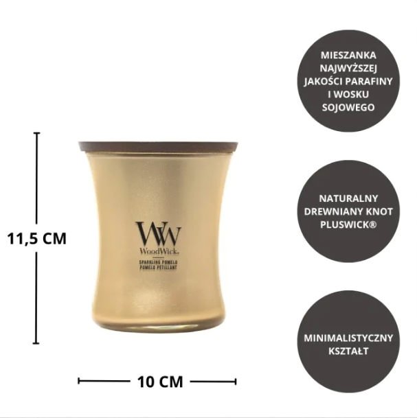 WoodWick Sparkling Pomelo to idealny wybór dla osób ceniących świeże, cytrusowe aromaty i lekką atmosferę relaksu.