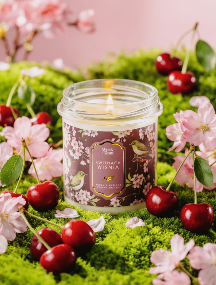 Wybierz Wosk i Knot Kwitnąca Wiśnia i otul swój dom subtelnym, wiosennym aromatem.